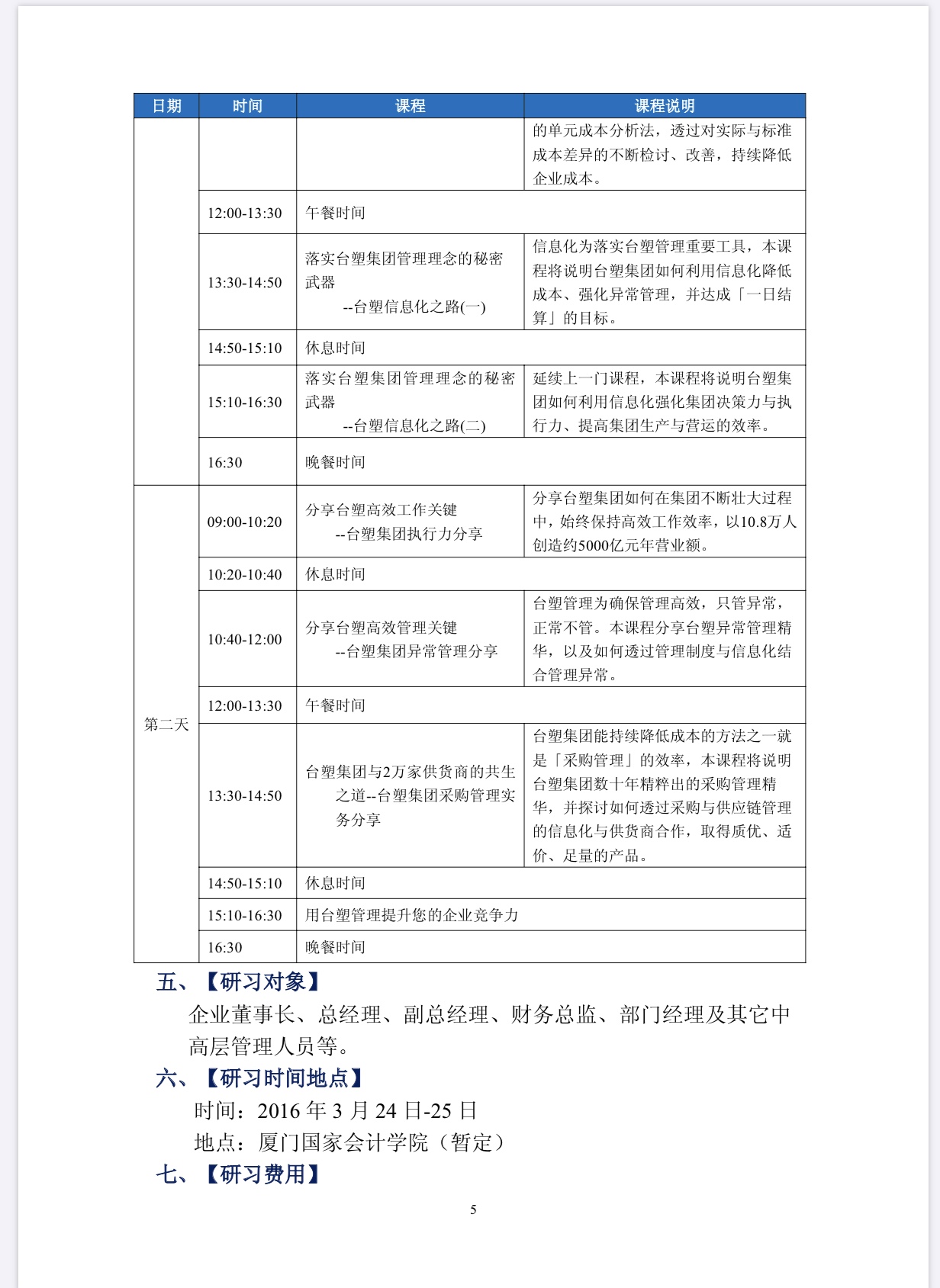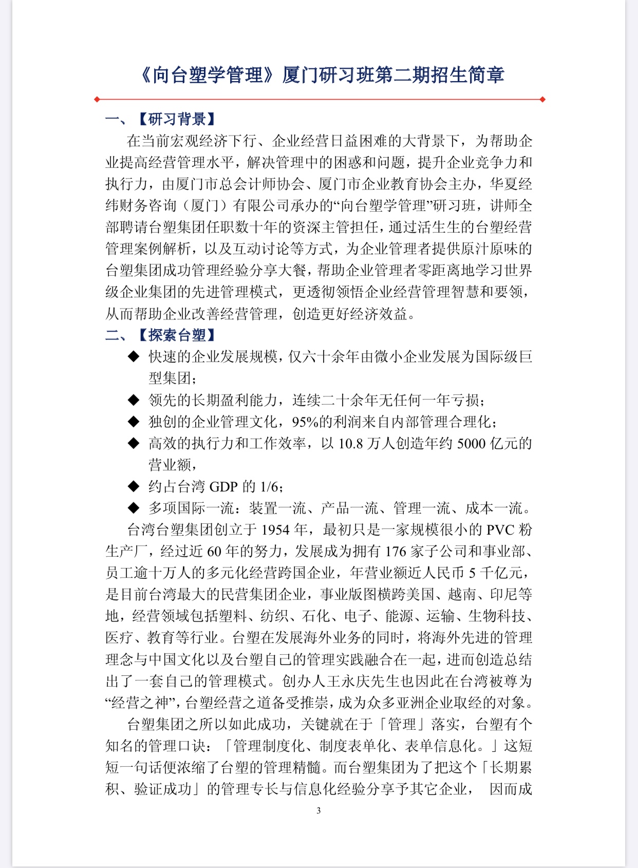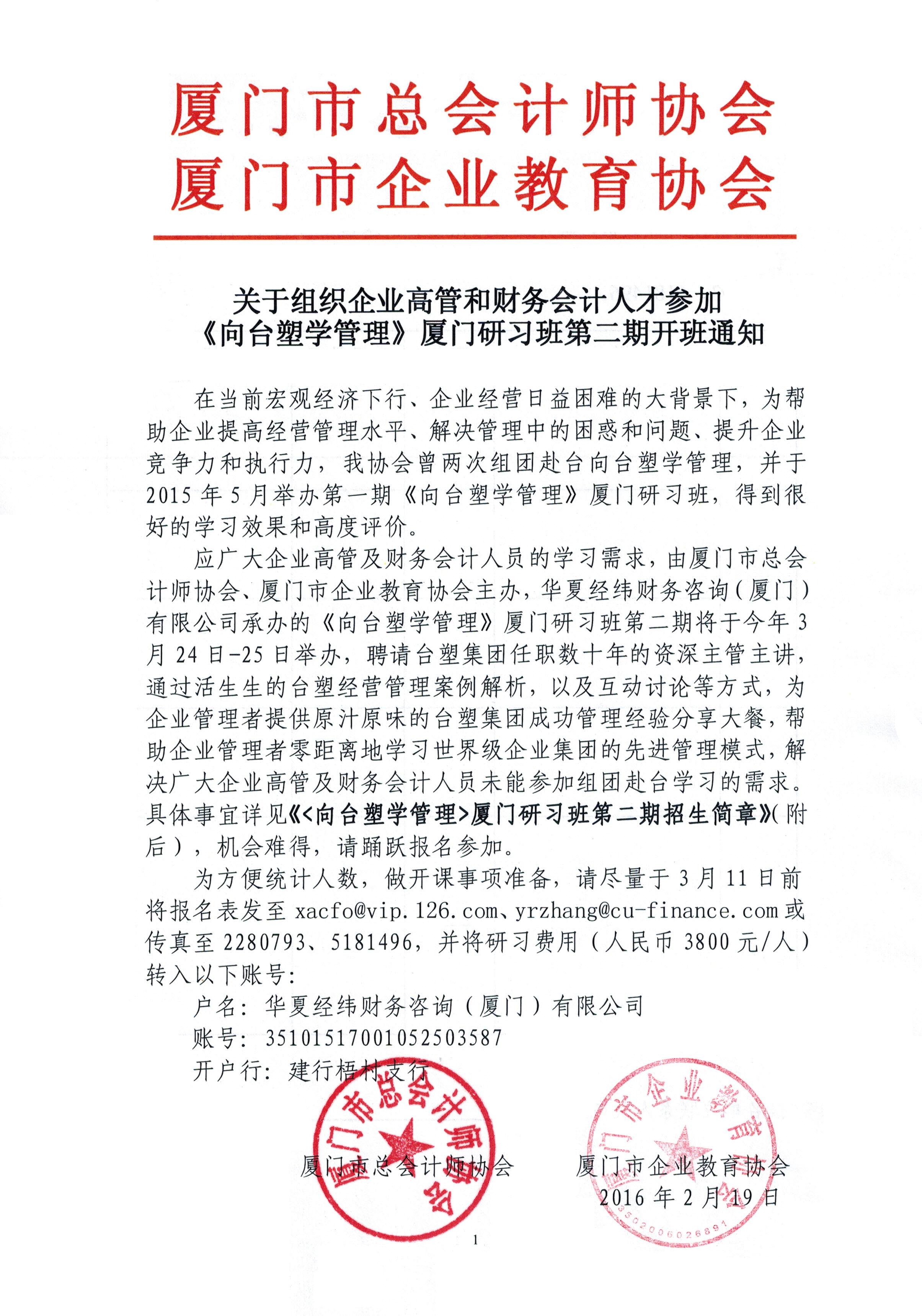 關(guān)于組織企業(yè)高管和財(cái)務(wù)會(huì)計(jì)人才參加 《向臺(tái)塑學(xué)管理》廈門研習(xí)班第二期開班通知